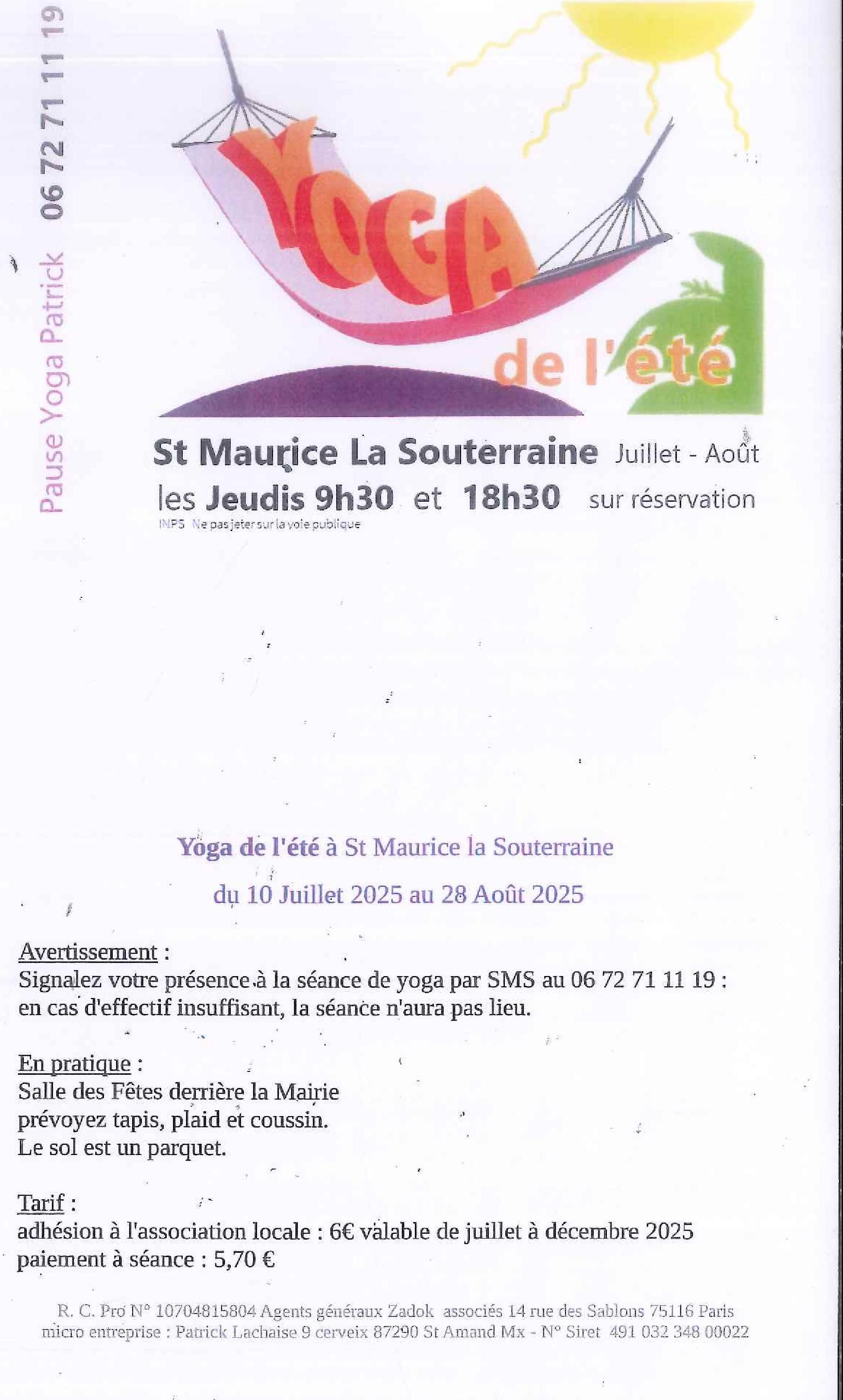 Inscriptions au 06 72 71 11 19, Cf. Affiche jointe.