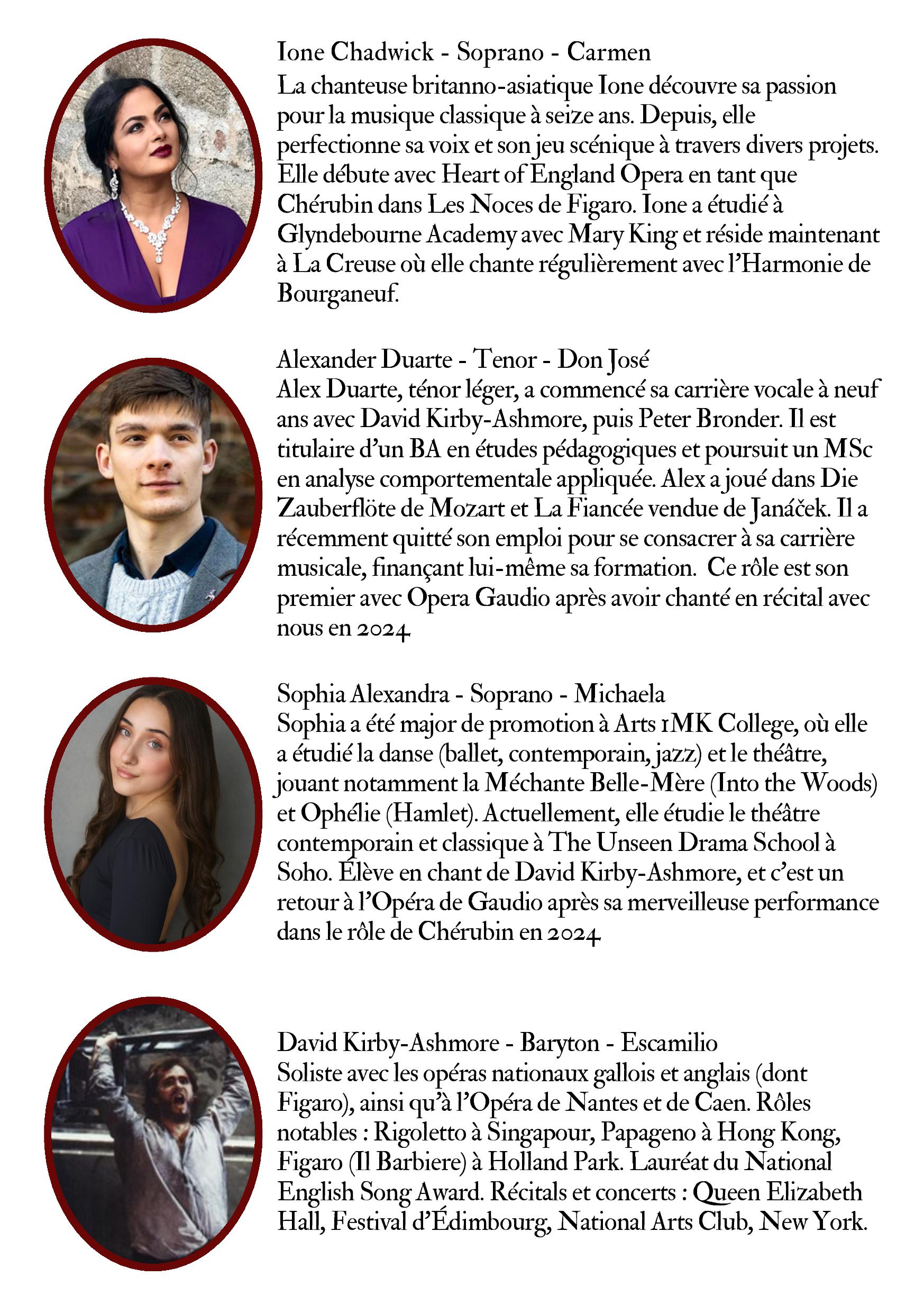 - une production de Carmen, le célèbre opéra de Georges Bizet, en version réduite en 1 heure,